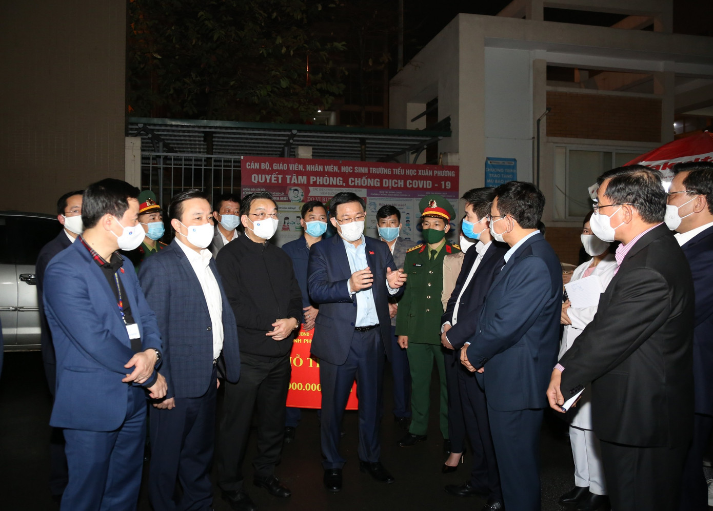 Sau khi nghe quận Nam Từ Liêm báo cáo, Bí thư Thành ủy Hà Nội đề nghị Sở Y tế, quận Nam Từ Liêm và các đơn vị liên quan tăng cường năng lực xét nghiệm cho học sinh, giáo viên và các phụ huynh học sinh đang cách ly tại trường tiểu học Xuân Phương, nhanh chóng có kết quả xét nghiệm lần 2.