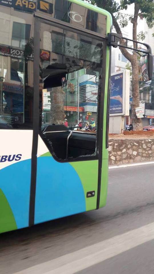 Sự cố này đã khiến phần kính ở cửa lên xe buýt nhanh bị vỡ tan.