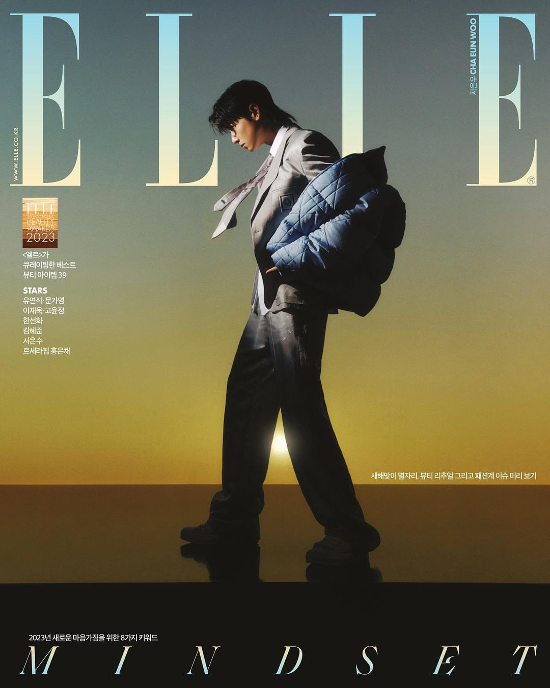 Sau khi trở thành đại sứ của Dior Hàn Quốc cho cả 2 mảng Thời trang (Dior Men) và Làm đẹp (Beauty), Cha Eun Woo được thương hiệu này tích cực đẩy bìa tạp chí. Xuất hiện trên 3 trang bìa của tạp chí ELLE Korea số tháng 1 năm 2023, Cha Eun Woo gây ấn tượng bởi phong cách độc lạ, cuốn hút.