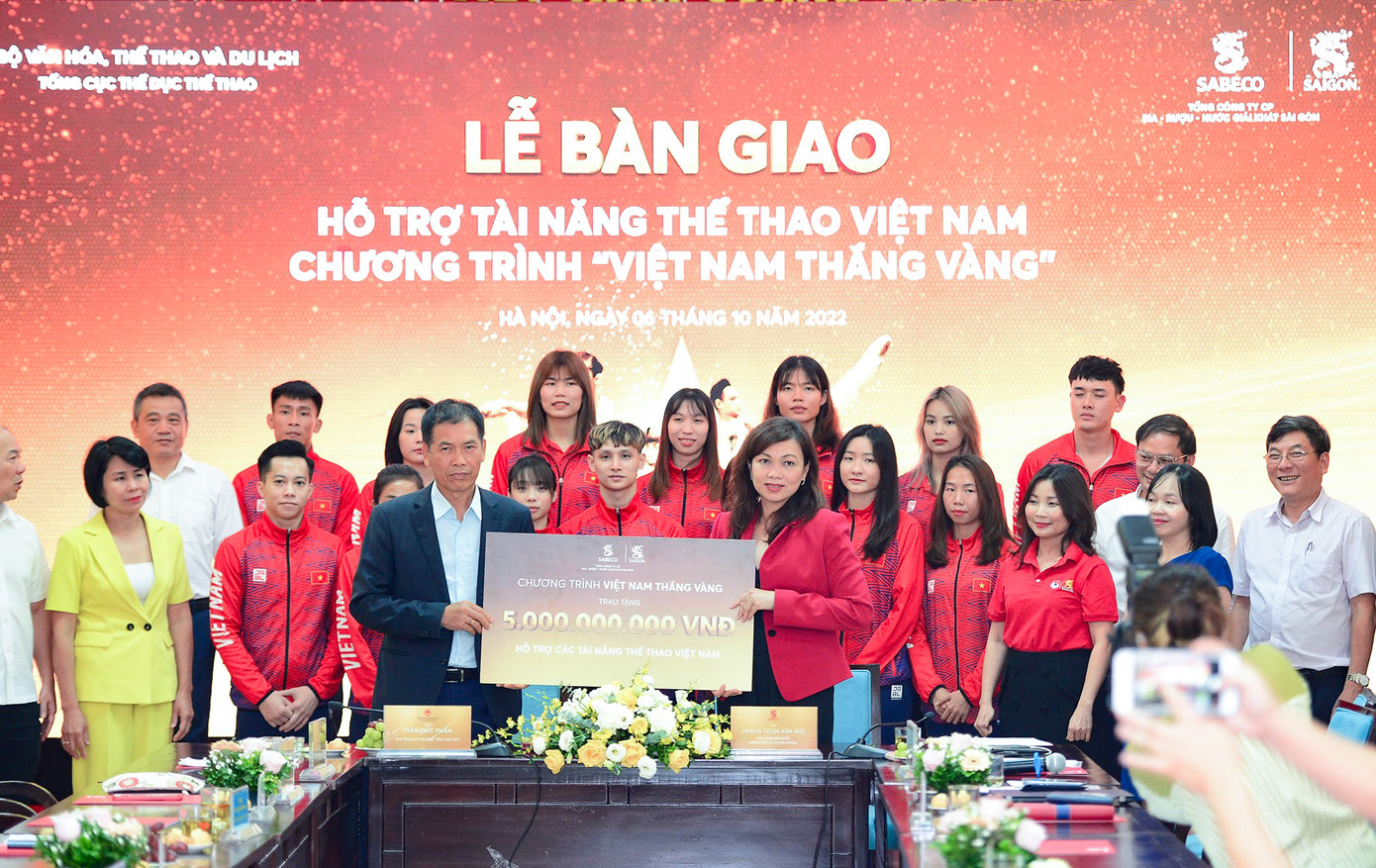Trong năm ngoái, SABECO đã có những khoản hỗ trợ thiết thực đối với các tài năng thể thao Việt Nam thông qua các hoạt động Vinh Quang Thể Thao Việt Nam 2023 - trao thưởng 230 triệu đồng cho các huấn luyện viên và vận động viên tiêu biểu; Việt Nam Thắng Vàng - bàn giao 5 tỉ đồng để hỗ trợ các vận động viên trọng điểm; hỗ trợ SEA Games 32 - “thưởng nóng" 2,9 tỉ đồng cho các vận động viên “thắng vàng" để ghi nhận cho sự nỗ lực cũng như tạo động lực cho thể thao nước nhà tiếp tục gặt hái thêm thành công.