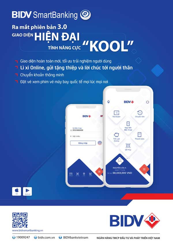 Ứng dụng ngân hàng thông minh BIDV SmartBanking giúp khách hàng giao dịch với BIDV mọi lúc mọi nơi, tương thích với tất cả các hệ điều hành IOS, Android, Windows Phone và chạy trên mọi thiết bị điện tử smartphone, máy tính bảng…có kết nối 3G/WIFI/GPRS.