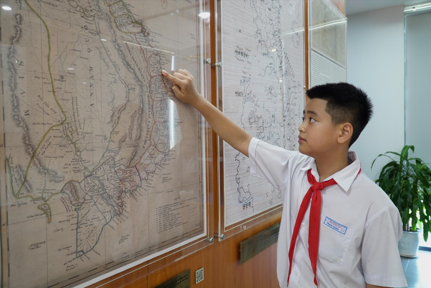 Lần đầu tiên đến nhà trưng bày, Mạnh Quân (lớp 7/1, THCS Hoàng Sa) cuốn hút bởi những tấm bản đồ khủng thể hiện chủ quyền biển đảo của đất nước. Quân càng hào hứng hơn khi bước vào cuộc đua tìm người thông thái kiến thức liên quan đến Hoàng Sa, Trường Sa. “Được tận mắt nhìn những tư liệu, bản đồ lãnh thổ đất nước qua các thời kỳ giúp em hiểu hơn về chủ quyền của Việt Nam đối với Hoàng Sa. Ngoài kiến thức, em thấy yêu quê hương, biển đảo, trân trọng những ngư dân, chiến sĩ bám biển, giữ vững chủ quyền hơn”, Quân nói.