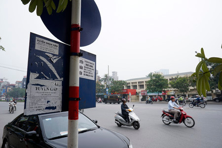 Hàng trăm biển báo giao thông đang bị vi phạm nghiêm trọng trên đường Hồ Tùng Mậu (quận Cầu Giấy, Hà Nội). Những biển báo giao thông ở đây đã bị những người dán quảng cáo rao vặt biến thành công cụ của họ. Nhiều biển báo không còn đọc được nội dung. Số còn lại bị dán giấy bừa bãi che kín toàn bộ mặt sau của  biển báo.