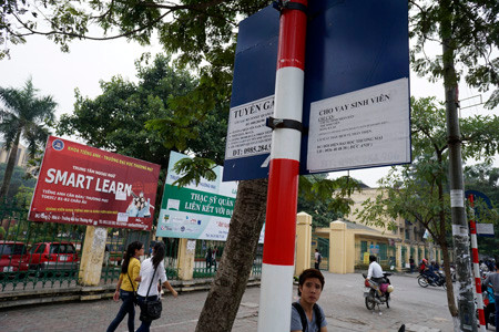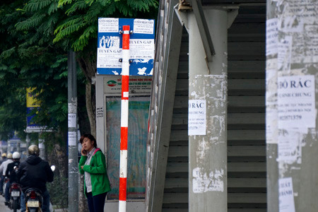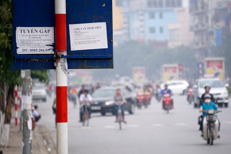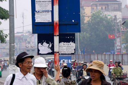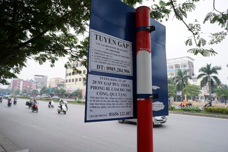Trên suốt chiều dài khoảng 2km, đường Hồ Tùng Mậu xác lập một kỉ lục đáng ngại: phố chuyên quảng cáo rao vặt bằng biển báo giao thông.