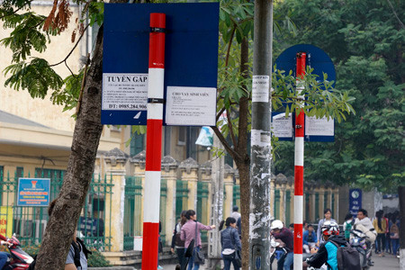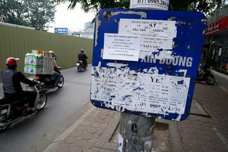 Các biển báo giao thông bỗng nhiên trở thành công cụ của những người dán quảng cáo rao vặt.