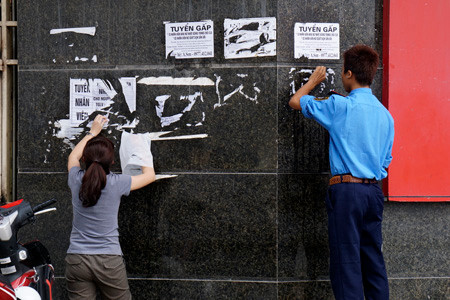 Công việc thường xuyên của những nhân viên một tòa nhà: dọn dẹp những thứ rác quảng cáo rao vặt.