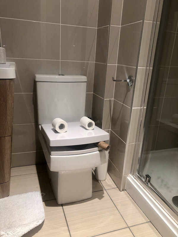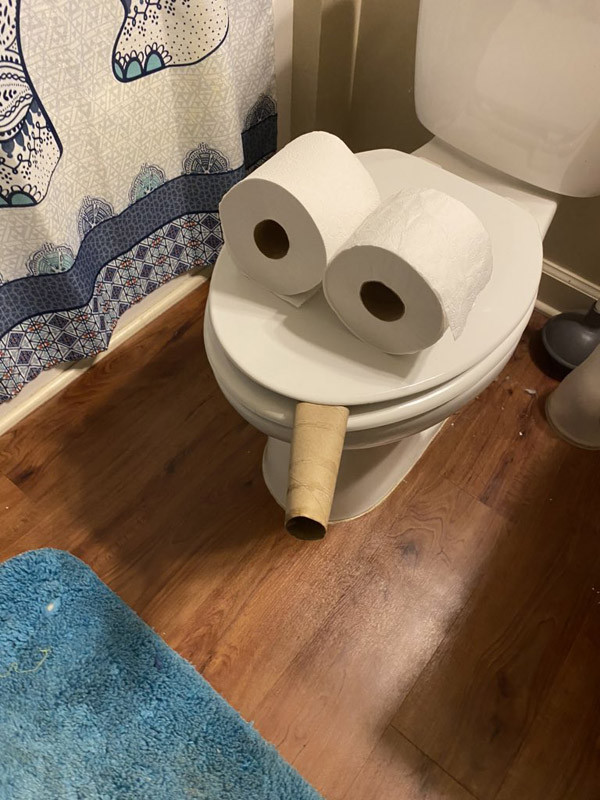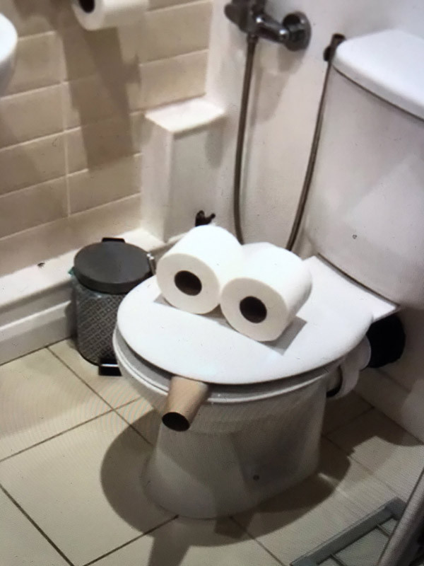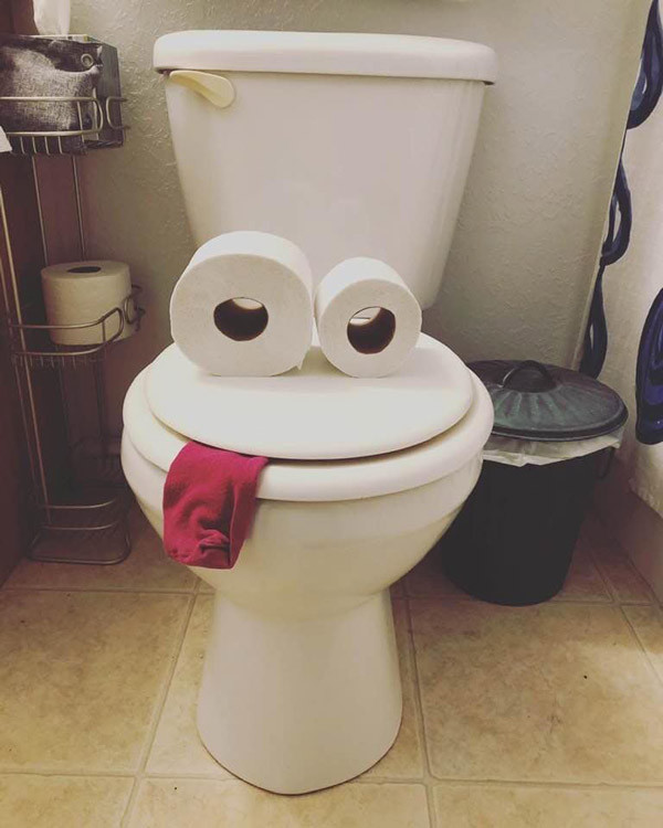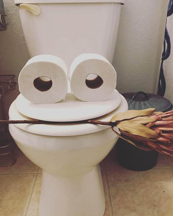 Chỉ cần chọn góc chụp phù hợp là đã có thể tạo ra một bức ảnh hài hước chỉ từ bồn cầu và giấy vệ sinh.