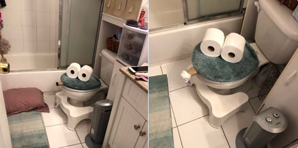 Nhiều người cho rằng, ý tưởng hô biến bồn cầu thành khuôn mặt với những biểu cảm khác nhau như thế này không chỉ giúp bản thân bớt cảm giác nhàm chán mà còn là cách để truyền tải thông điệp lạc quan trong mùa dịch.