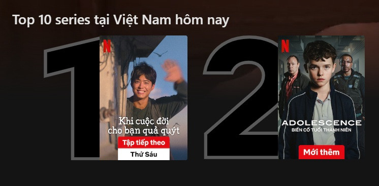 Bộ phim tâm lý tội phạm Biến Cố Tuổi Thành Niên (Adolescence) hiện đang gây sốt khắp nơi, đứng đầu nhiều BXH phim truyền hình được xem nhiều nhất của Netflix ở nhiều quốc gia. Ở Việt Nam, phim cũng nhanh chóng leo hạng và đứng thứ 2, xếp sau Khi Cuộc Đời Cho Bạn Quả Quýt.