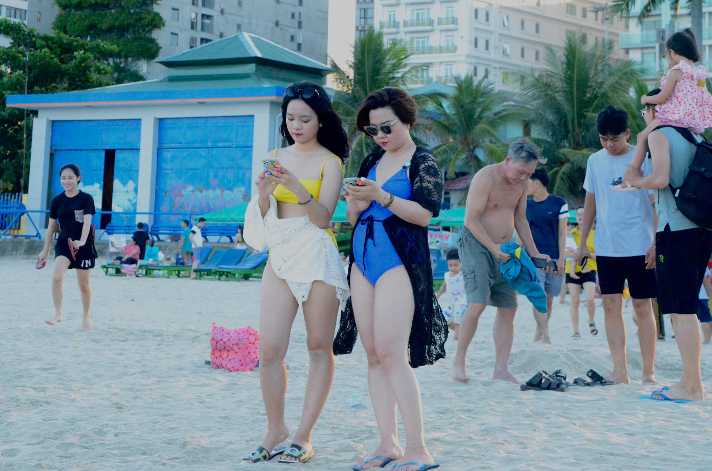 Đa số người dân ra biển tắm là khách du lịch từ các tỉnh thành như Hà Nội, TP Hồ Chí Minh, Nam Định...