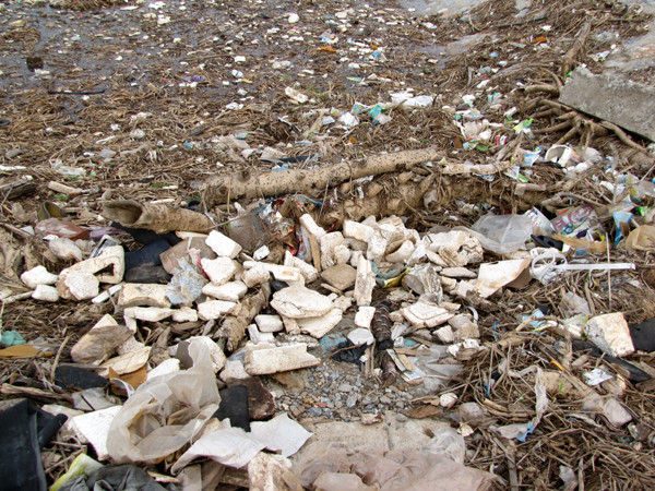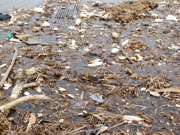 | Rác thải trôi dạt vào bờ . |