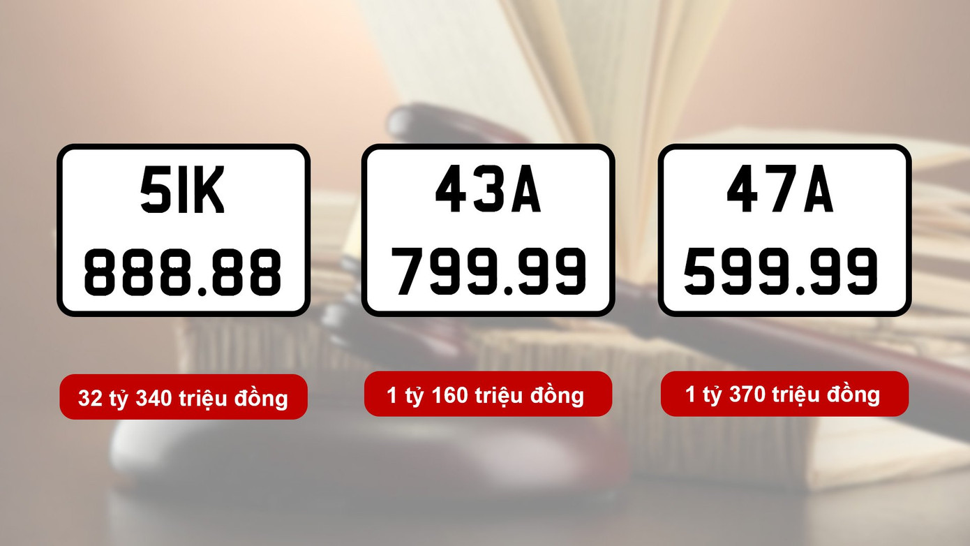 Kết quả lần lượt BKS: 51K-888.88 (TP HCM) trên 32,34 tỷ đồng; 43A-799.99 (Đà Nẵng) là 1,16 tỷ đồng và 47A-599.99 (Đắk Lắk) là 1,37 tỷ đồng.