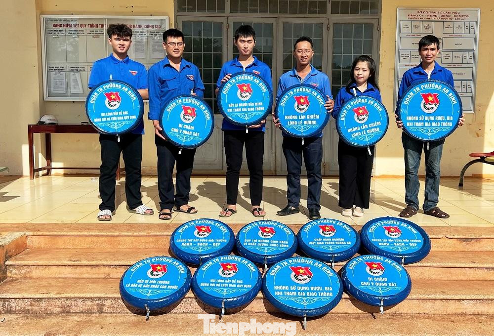 Để có những lốp xe này, đoàn viên thanh niên đến các tiệm sửa xe xin các lốp xe đã hỏng đem về sơn màu xanh làm khung; cắt các tấm nhôm alu sơn màu xanh làm mặt biển báo; in chữ màu trắng và logo đoàn với các nội dung: Vui lòng để rác đúng nơi và thời gian quy định; chung tay xây dựng môi trường xanh- sạch- đẹp; Bảo vệ môi trường, bảo vệ sức khỏe con người; Không sử dụng rượu bia khi tham gia giao thông; Đi chậm chú ý quan sát; chấp hành nghiêm luật giao thông đường bộ... Hàng chục biển báo, bảng tuyên truyền do đoàn thanh niên phường làm từ các lốp xe cũ đã được gắn tại các tuyến đường của phường.