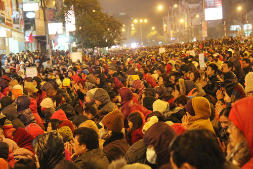Bắt đầu từ khoảng 18h30 hôm qua (13/2/2014, tức ngày 14 tháng Giêng âm lịch), tại khu vực chùa Phúc Khánh trên đường Tây Sơn (Hà Nội) đã có hàng nghìn người đổ xô về dự lễ cầu an, giải hạn sao La Hầu.