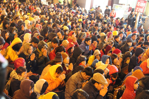 Cho đến phụ nữ, ai cũng đều thành tâm cầu nguyện.
