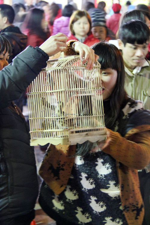 Sau khi buổi lễ kết thúc, có những gia đình thả chim phóng sinh trong khu vực chùa.