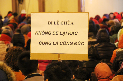 Những tấm biển như thế này được mọi người cầm đan xen trong khu vực làm lễ nhằm kêu gọi mọi người giữ gìn vệ sinh môi trường.