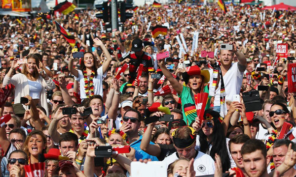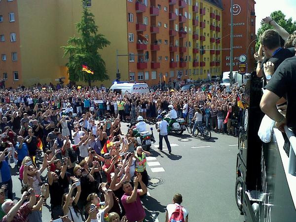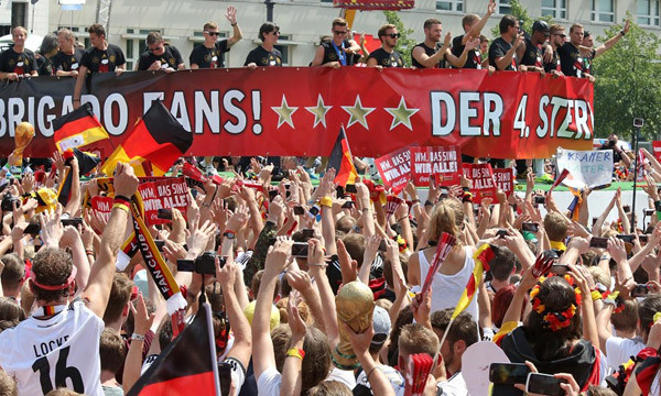 Cổ động viên cuồng nhiệt chào đón tuyển Đức trở về.