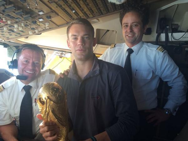 Manuel Neuer cùng các phi hành đoàn trên chuyến bay.