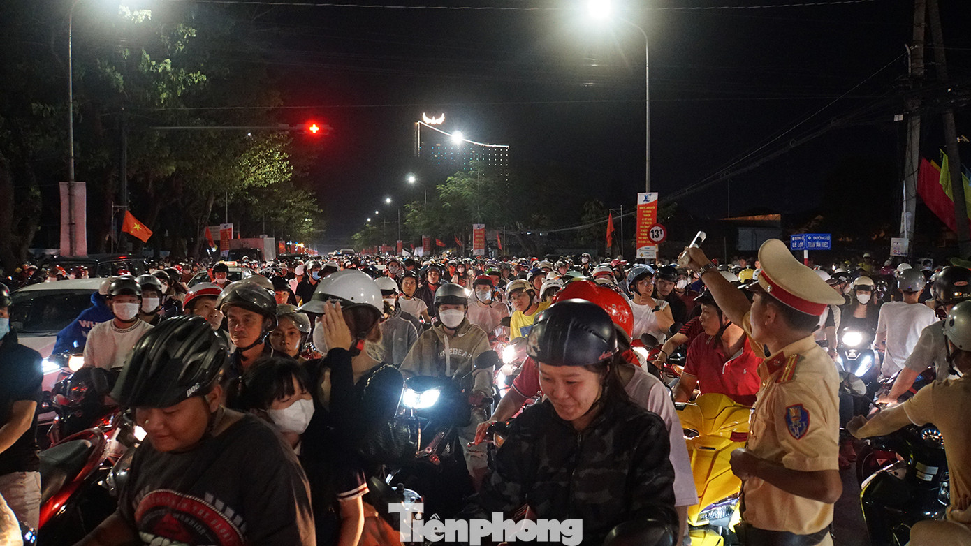 | Cảnh sát giao thông phân luồng xe trước 'biển người'. Ảnh: Hòa Hội |