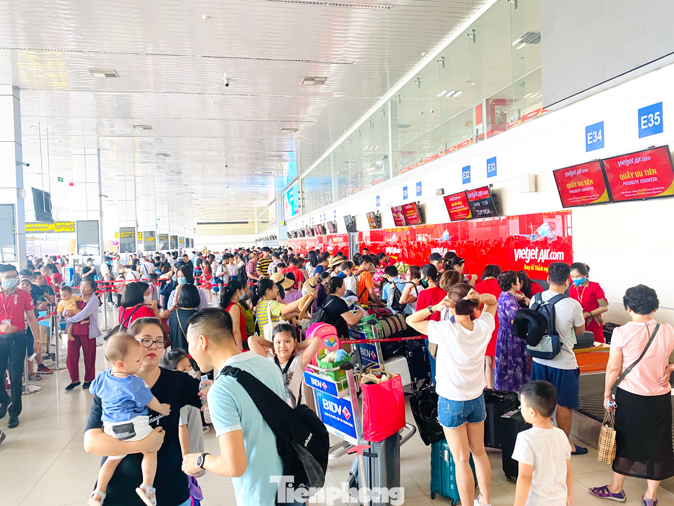 Để kích cầu du lịch nội địa, các hãng hàng không kết hợp với các khu nghỉ dưỡng tung ra các chương trình khuyến mãi. Lượng khách đông khiến việc check-in tại các quầy vé luôn trong tình trạng quá tải.