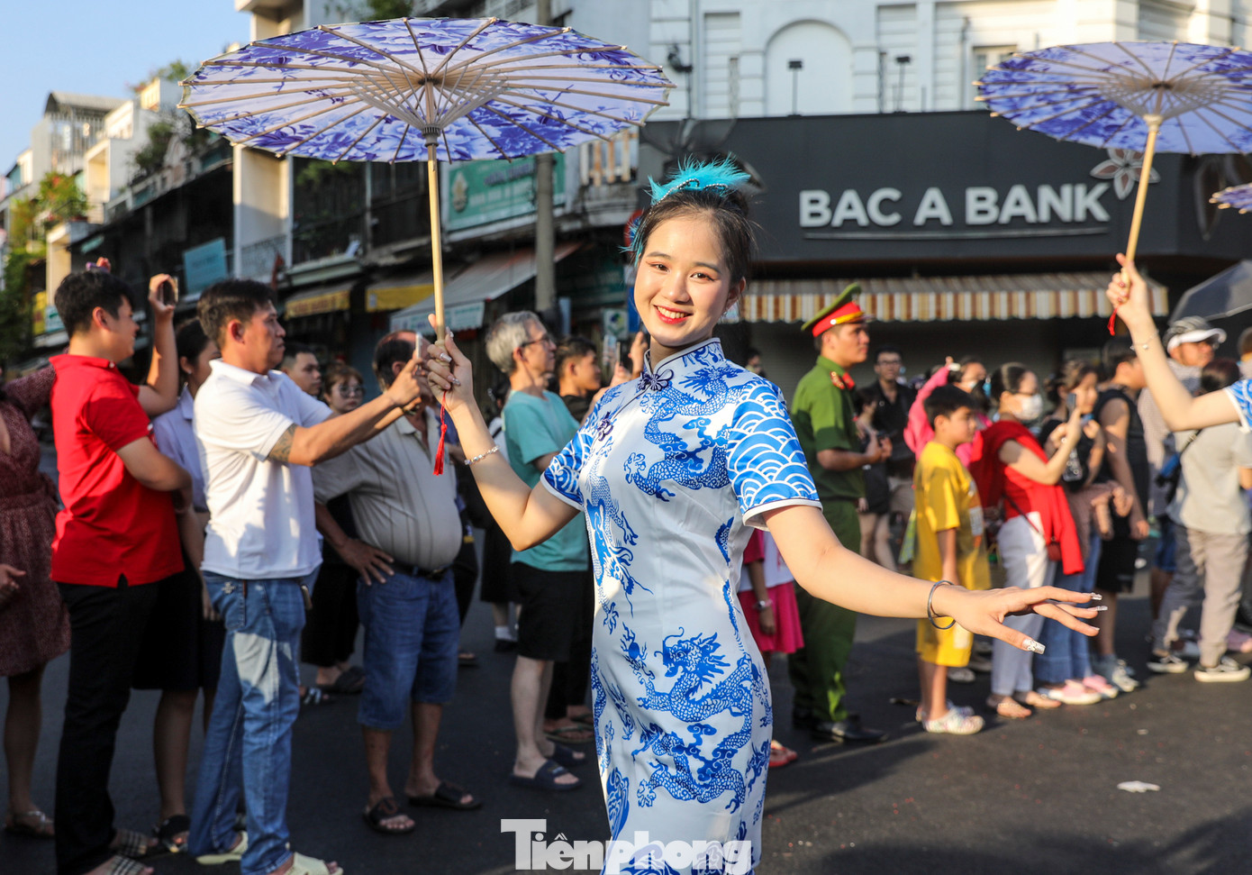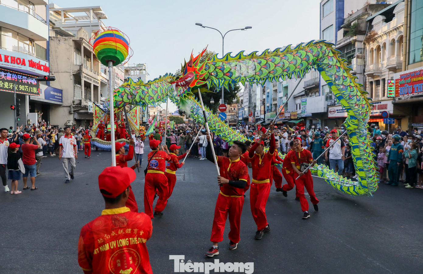 | Đoàn diễu hành đi qua nhiều tuyến đường quanh khu vực Chợ Lớn, hàng nghìn người dân cũng hòa mình vào không khí Lễ hội, chiêm ngưỡng những màn biểu diễn lân sư rồng đặc sắc. |
