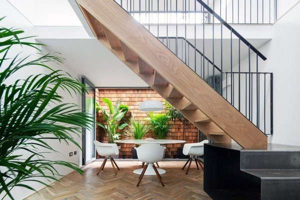 Các KTS đã cải tạo dự án thành một ngôi nhà 3 phòng ngủ, bao gồm một tầng hầm với các giếng trời, kính là vật liệu được sử dụng nhiều trong cấu trúc chính của ngôi nhà nhằm tạo ra một không gian sống mở cho người cư ngụ.