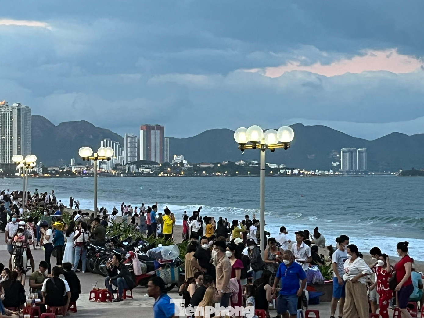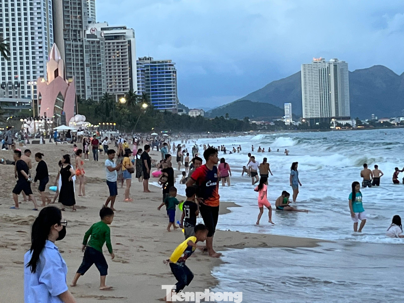 Trong lúc đó, bãi biển Nha Trang tại khu vực đường Trần Phú và Phạm Văn Đồng đông nghịt du khách tắm biển, vui chơi. Lâu lắm rồi, bãi biển Nha Trang mới có đông du khách tắm biển như thế!