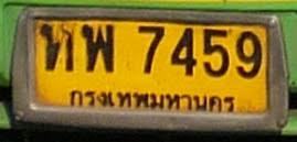 Cụ thể, xe taxi liên tỉnh có biển màu vàng, chữ đỏ; Xe taxi bình thường nền vàng, chữ đen; Xe taxi ba bánh (hay còn gọi là tuk- tuks) nền vàng, chữ xanh lá cây; Xe tải mini (thường gọi là Subaru theo tiếng địa phương) nền vàng, chữ xanh da trời; Xe cho thuê, xe du lịch, doanh nghiệp nền màu xanh ngọc, chữ trắng; Xe cá nhân biển nền xanh ngọc, chữ trắng; Xe tải tư nhân biển trắng, chữ xanh da trời; Xe kéo nông nghiệp biển màu cam, chữ đen…