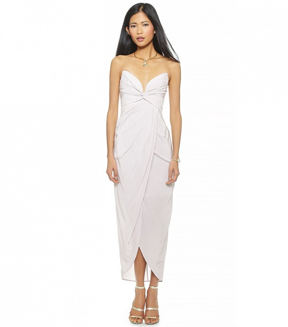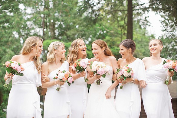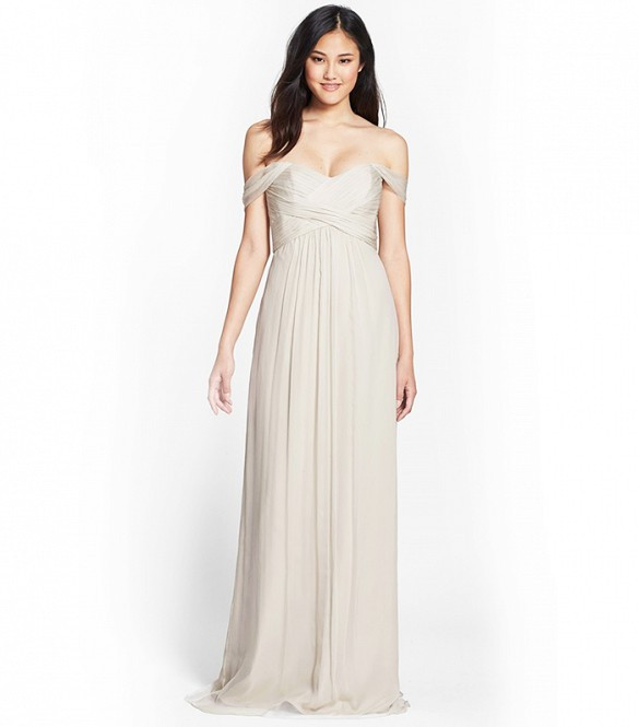 Chiếc váy với biến tấu nhẹ ở vai giúp các phù dâu trông quyến rũ hơn mà không cần quá hở hang. Điểm nhấn ở vai cũng mang đến cho các phù dâu nét nhẹ nhàng, thanh tao.