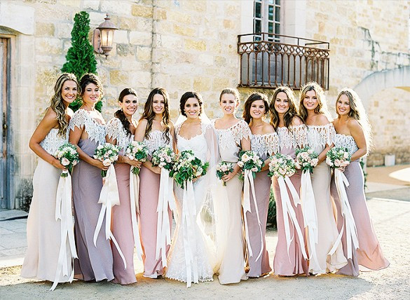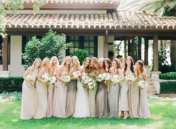 Váy phù dâu có ảnh nhũ nhẹ sẽ làm các phù dâu luôn nổi bật trước và cả trong khi cử hành hôn lễ.