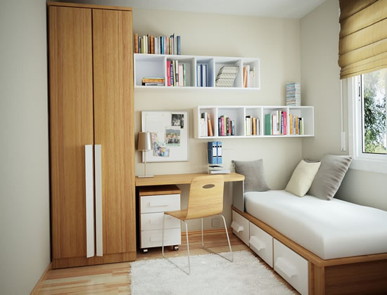 Thiết kế tủ âm tường và giá sách độc đáo giúp trẻ thuận tiện trong sinh hoạt.