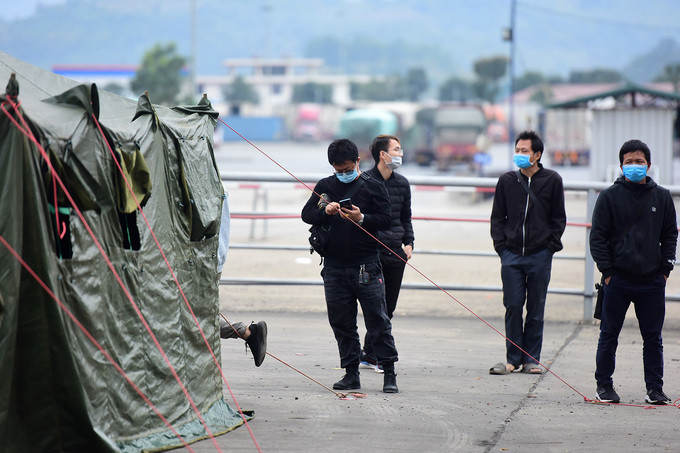 Tài xế Trung Quốc kiểm tra thân nhiệt trước khi làm thủ tục xuất nhập khẩu hàng hoá tại hải quan. Người có thân nhiệt cao bất thường sẽ bị từ chối làm thủ tục. Trước mùa dịch, cửa khẩu mỗi ngày thông quan 300 - 400 lượt container, nhưng nay giảm chỉ còn một nửa.