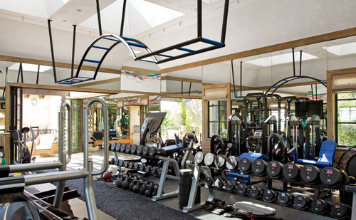 Phòng thể hình với đầy đủ dụng cụ tập.