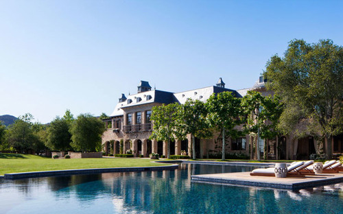 Khu biệt thự do kiến trúc sư Richard Landry thiết kế, có đường lái xe lượn quanh co, sân rộng trải đá cuội...