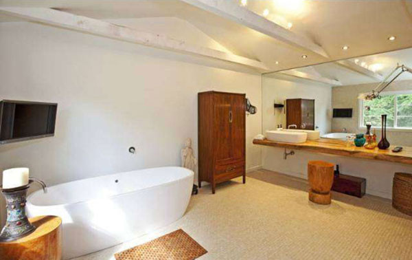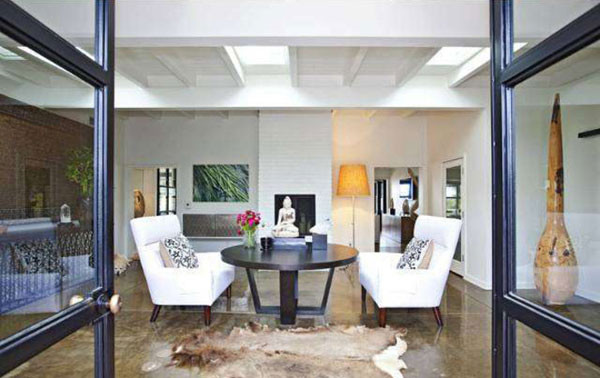Ngôi nhà có diện tích gần 200m2 nhưng nằm giữa không gian sân vườn rộng lớn hơn 30.000m2. Nội thất ấm cúng theo phong cách dân dã.