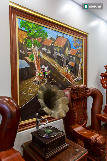 Toàn bộ nội thất trong phòng khách đều được Chiến Thắng đặt làm riêng cho phù hợp với kích cỡ khá lớn của căn phòng.