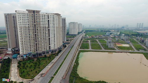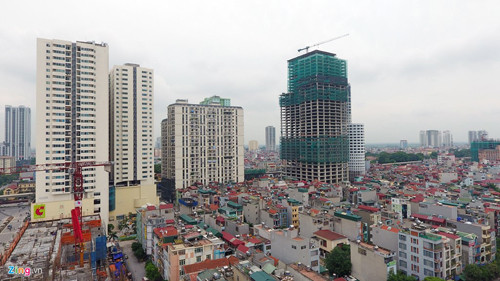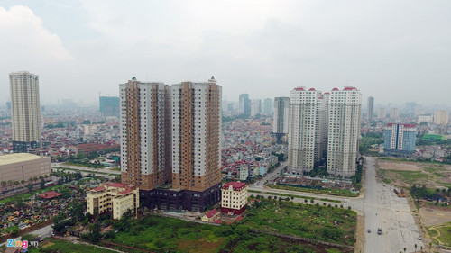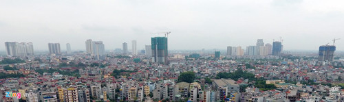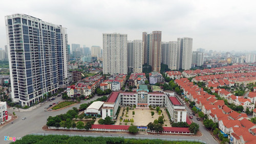 Nhìn từ trên cao, khu vực quận Hà Đông (Hà Nội) nhan nhản nhà cao tầng. Ngoài các dự án chung cư, nhiều dãy biệt thự, nhà liền kề cũng phát triển với số lượng lớn.