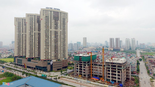 Khu đô thị mới Văn Phú quy mô 94,1 ha được thiết kế với không gian kiến trúc hiện đại, hệ thống cơ sở hạ tầng tiên tiến theo tiêu chuẩn đô thị loại 1. Trong ảnh là dự án Văn Phú Victoria khởi công từ năm 2010, giá được rao bán mỗi căn từ 15 triệu/m2.