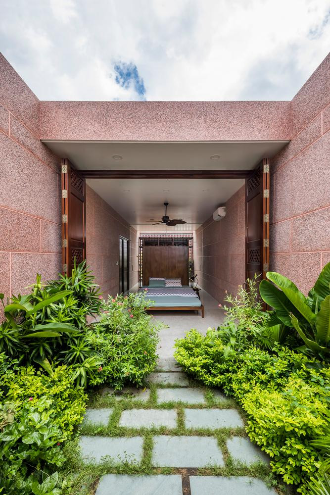 | Trước mỗi phòng ngủ là một khu vườn với đủ loại cây xanh tốt giúp người ở luôn được gần gũi với thiên nhiên, giảm stress. |