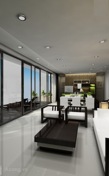 Thiết kế nội thất phòng khách (sinh hoạt chung) cùng chung không gian với phòng ăn và bếp