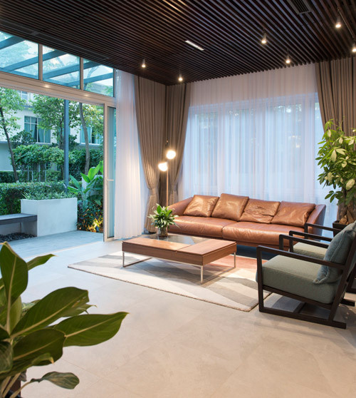 Căn biệt thự dành cho gia đình bốn thế hệ được bổ sung nhiều chi tiết gỗ để tạo cảm giác ấm cúng. Không chỉ là nơi ở, ngôi nhà còn là chỗ tụ họp của gia đình với người thân, bạn bè. Nhà có khoảng sân vườn lên tới 140 m2, rộng hơn cả diện tích xây nhà.