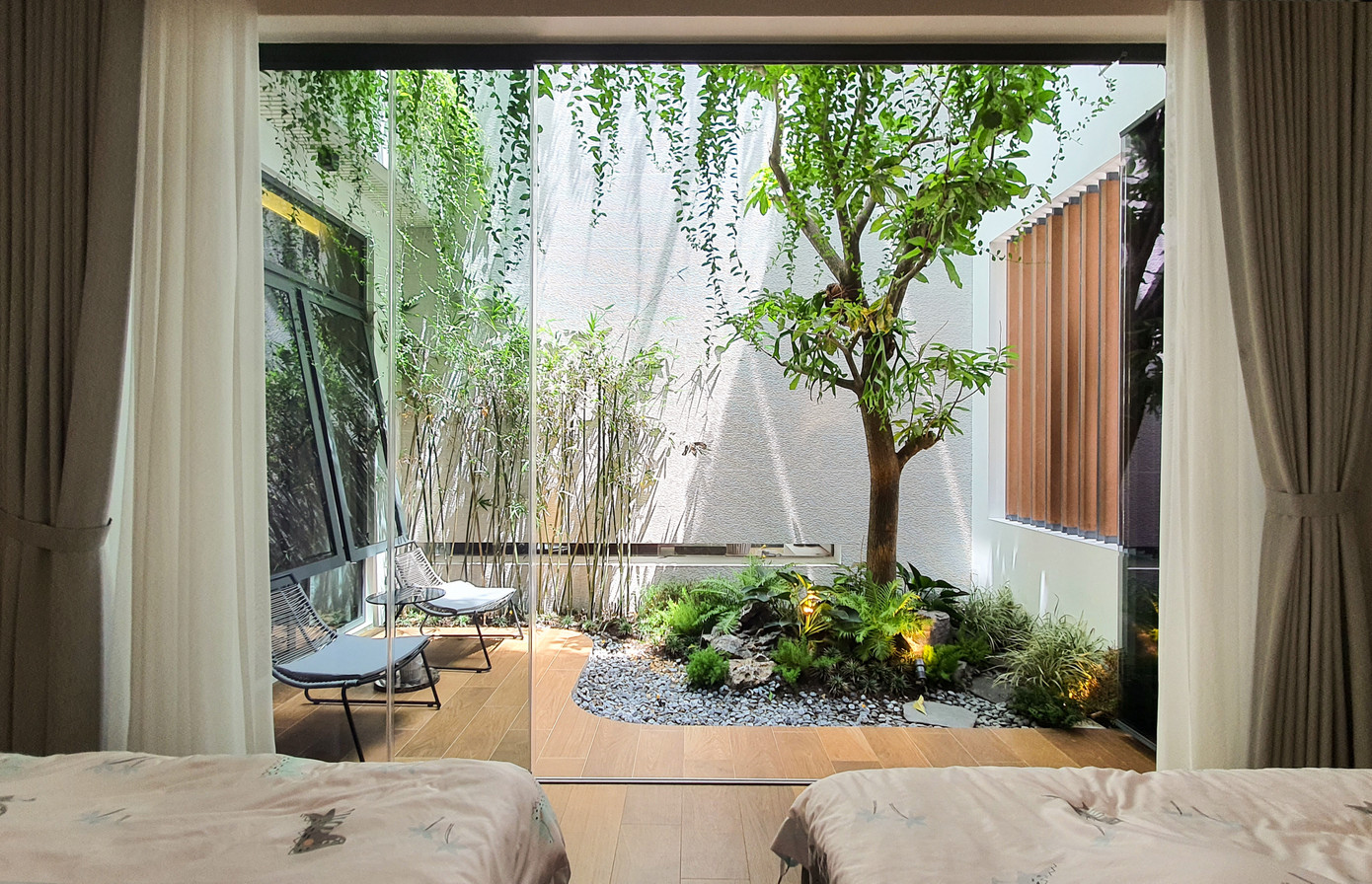Gia chủ mong muốn có các phòng nghỉ dưỡng như một resort với sân vườn thoáng gió, lấy ánh sáng tự nhiên để khi về nhà cảm nhận được sự thư giãn, thoải mái sau những giờ làm việc căng thẳng.