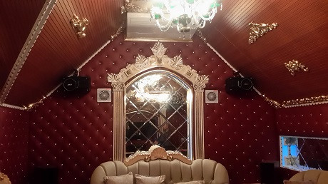 Ngay khi bước vào gian phòng đầu tiên có thể bắt gặp bàn, ghế, tủ đứng được dát vàng sáng lòa