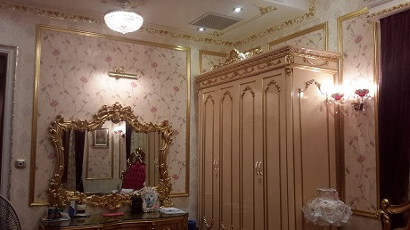 Tủ và gương trang điểm được mạ vàng các chi tiết viền
