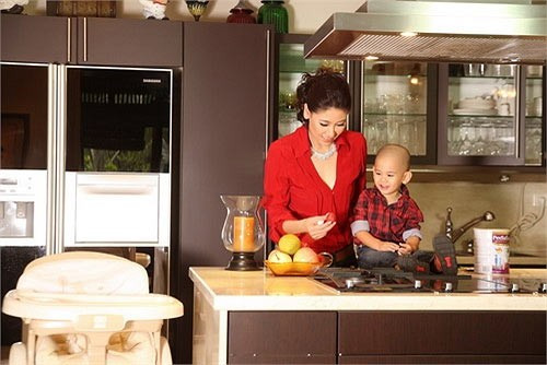 | Gian bếp tiện nghi là nơi hoa hậu Hà Kiều Anh có thể nấu những món ăn ngon cho chồng và hai cậu con trai đáng yêu của cô.. |