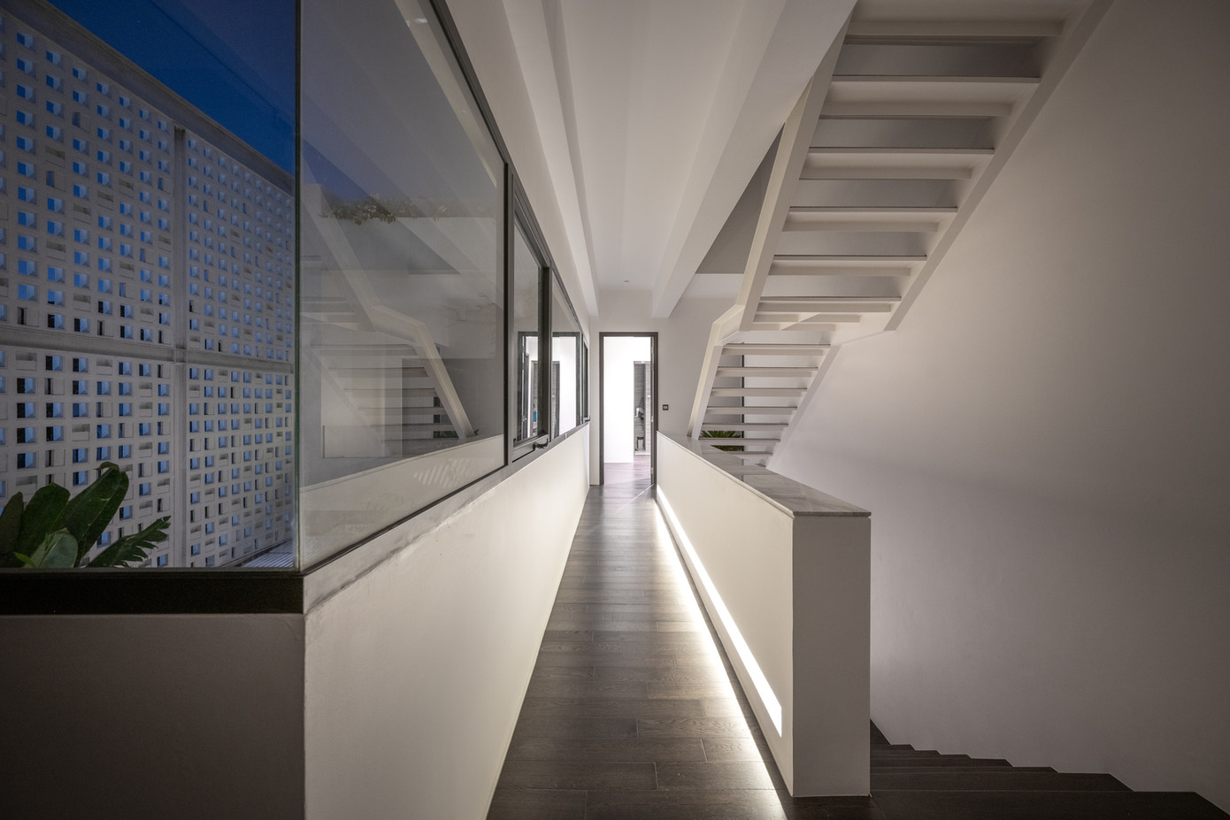 | Để tiết kiệm chi phí thắp sáng cũng như để không khí trong nhà được lưu thông, nhóm thiết kế đã tạo ra một giếng trời lớn giữa biệt thự. |