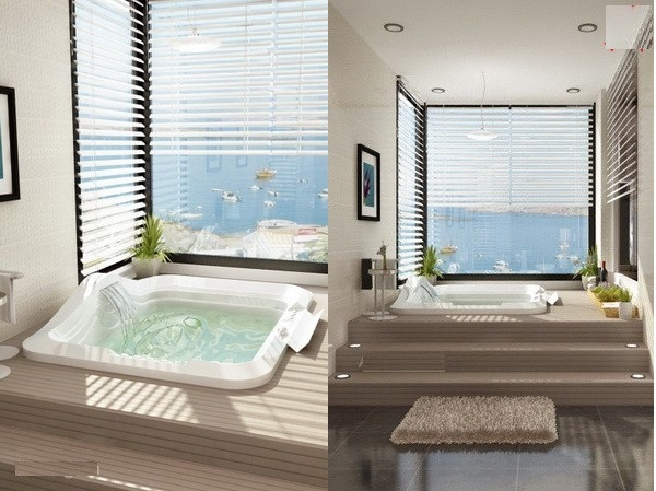 Bồn massage được ưu ái dành vị trí đẹp nhất của phòng tắm