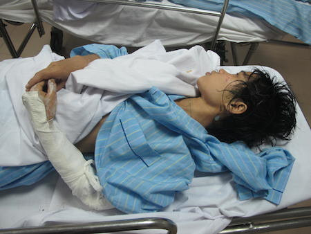 Không may mắn như anh Quang, chị Lăng Thị Kim (24 tuổi, trú tại xã Nhạc Kỳ, Văn Lãng, Lạng Sơn) sau vụ tai nạn đã bị gãy cánh tay phải, người bị đa chấn thương.