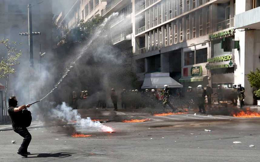 Có khoảng 50.000 người đã tham gia cuộc biểu tình bao gồm bác sĩ, giáo viên nhân viên thuế, nhân viên giao thông vận tải… Những người biểu tình đã dùng bom xăng ném vào các tòa nhà chính phủ ở thủ đô Athens khiến đám cháy lan rộng.